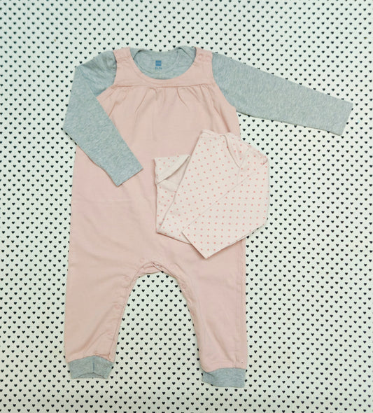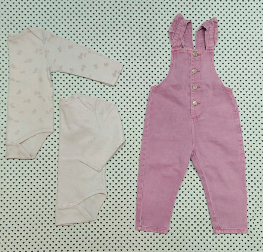 Minis Mädchen | 3-tlg. Set: 2x Body (Next), Latzhose (Zara), Gr. 86/92