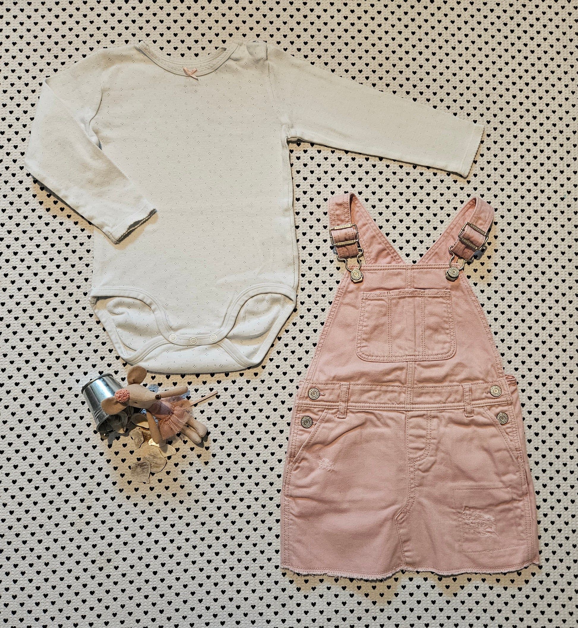 Minis Mädchen | Set: Latzrock von Gap und Body Langarm von H&M, Gr. 92
