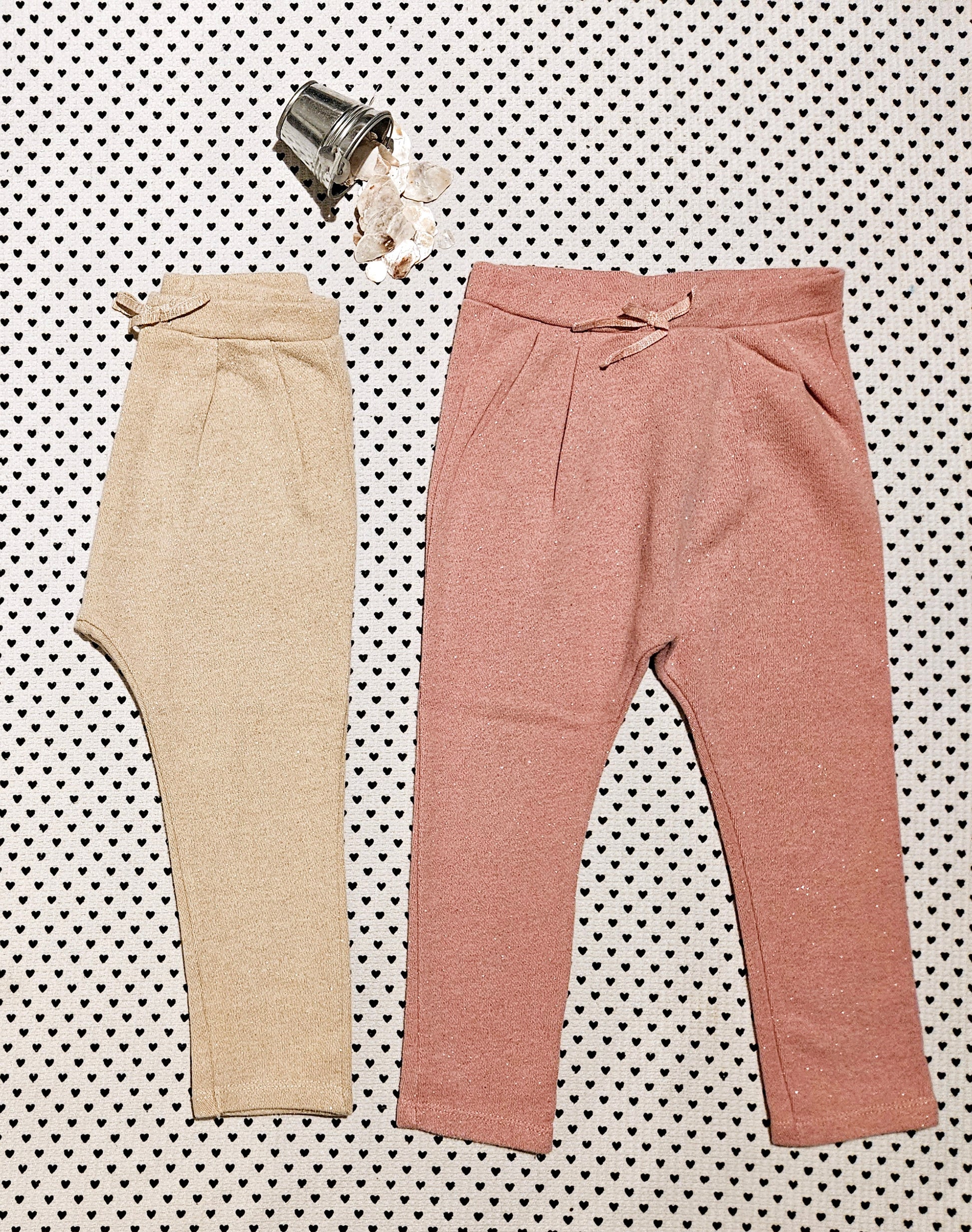 2er-Pack Leggings von Zara mit Glitzerfaden und Schleife vorne Mittig