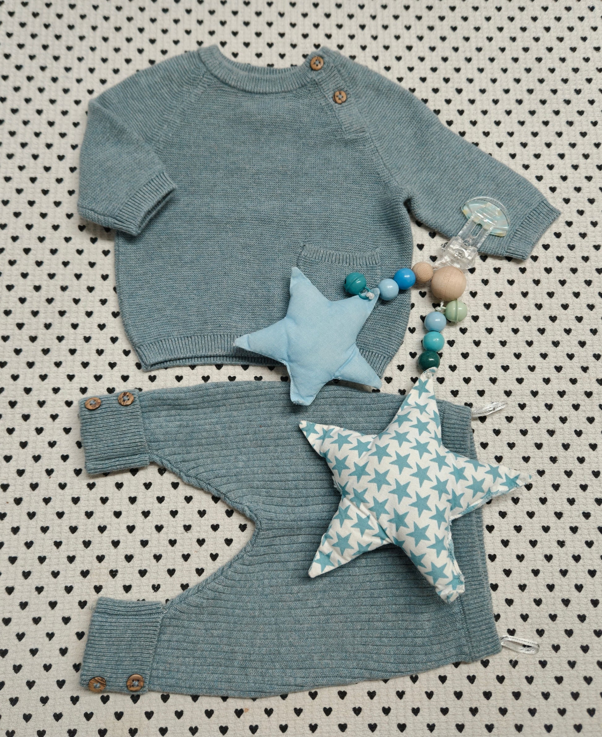 Minis Junge | Unisex | 3-tlg. Set: Strickpullover und Strickhose (C&A), Kinderwagenkette, Gr. 48/50