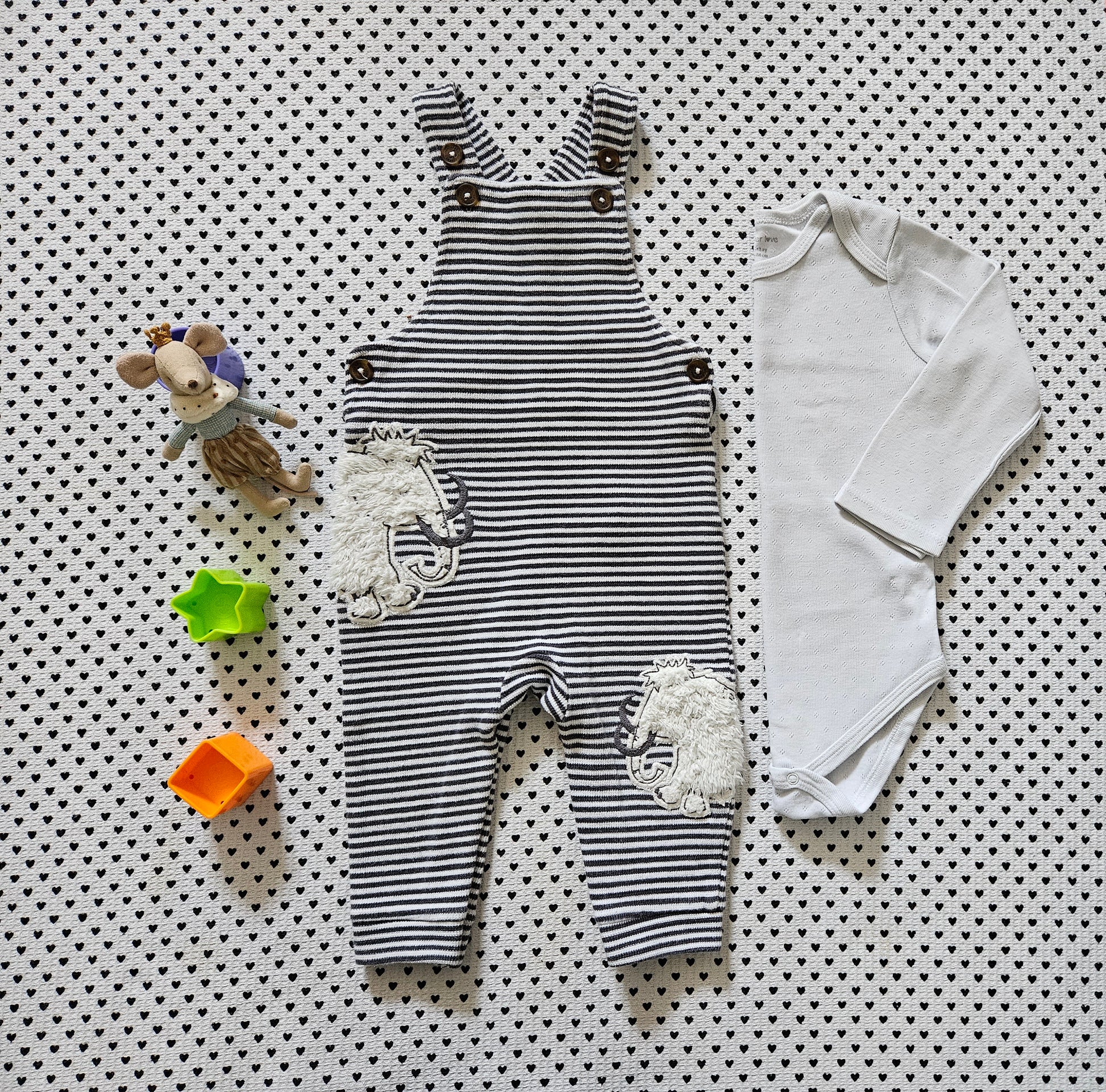 - Robuste Latzhose von Mantaray, verstellbaren Trägern, Druckknöpfen zwischen den Beinen - für müheloses Windelwechseln