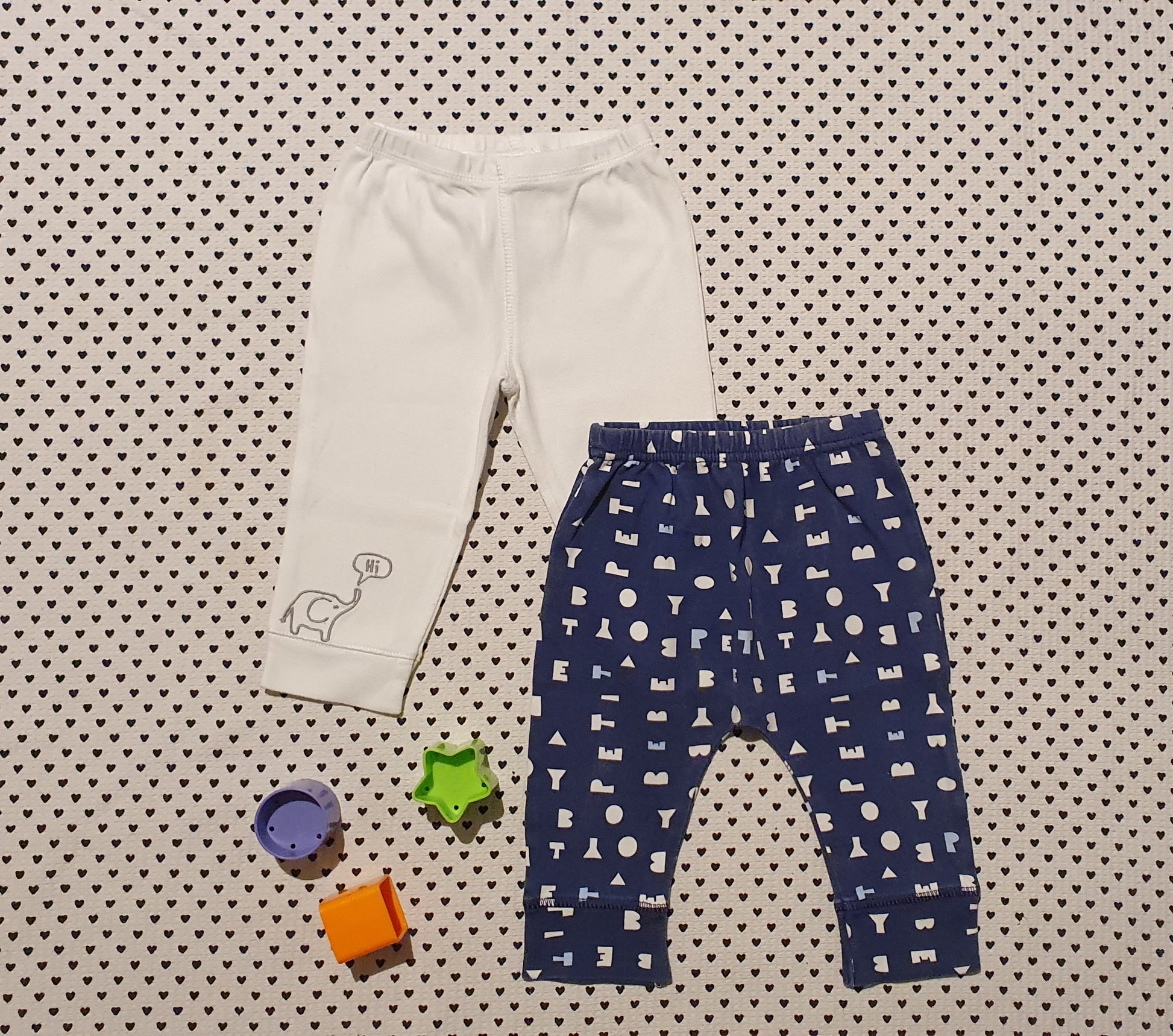 Leggings/Trainerhosen: 1x von Carters (weiss mit Elefantenmotiv), 1x von Wooliesbaby