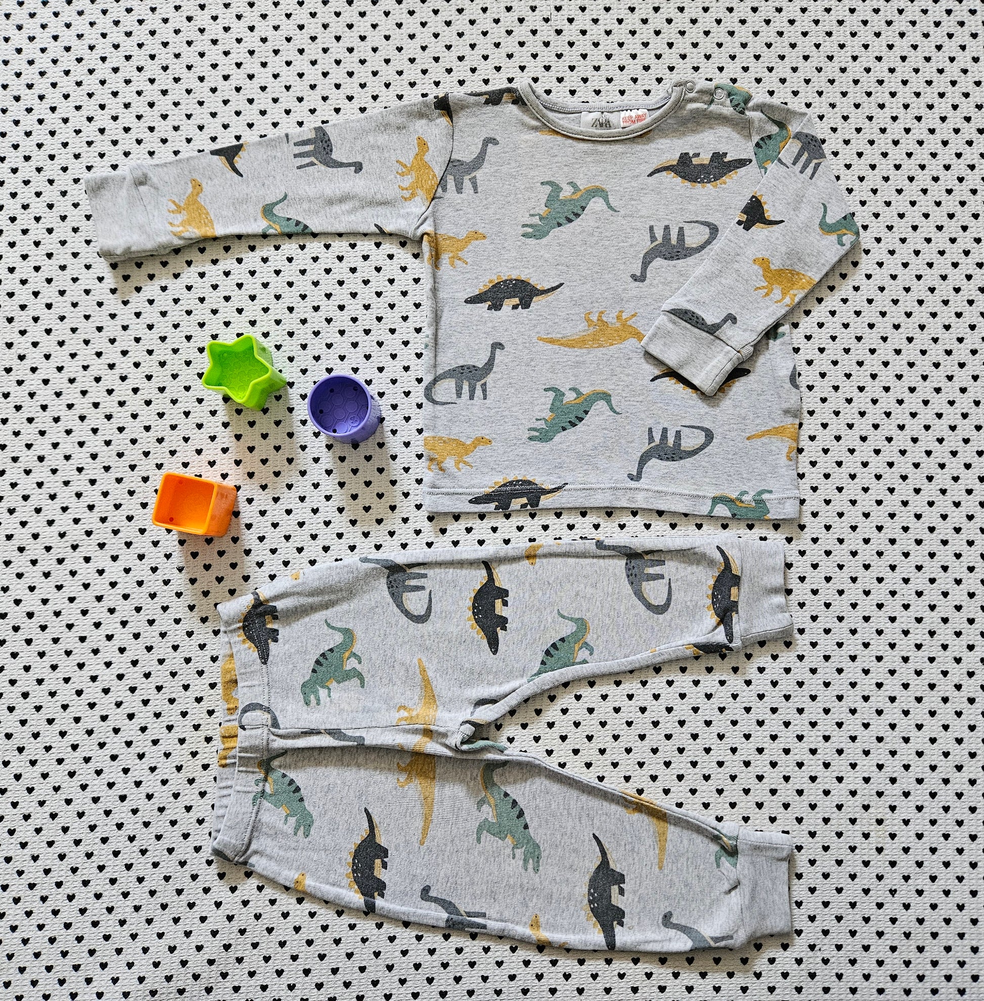 Pyjama 2-teilig von Zara, weiches, elastisches Material, Druckknöpfe neben dem Halsausschnitt, Dino-Print