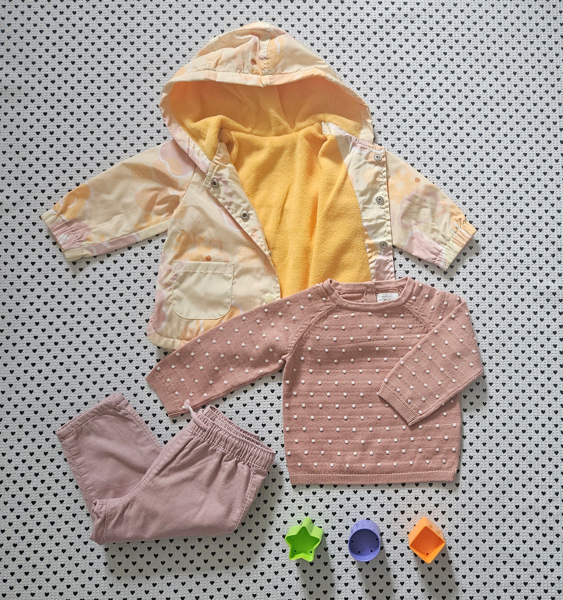 Minis Mädchen | 3-tlg. Set: Jacke, Strickpullover, Hose gefüttert, Gr. 68
