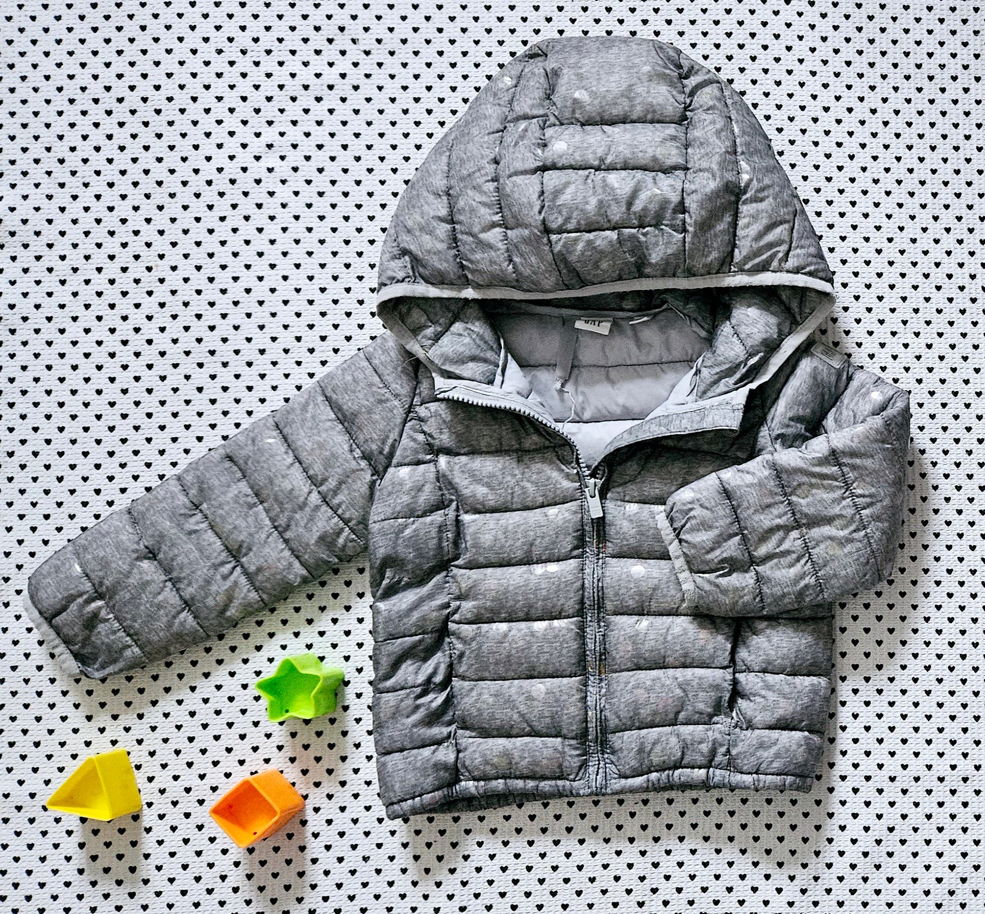 Synth. Daunenjacke von Gap, mit fixer Kapuze, durchgehender Reissverschluss,